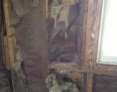 Demo existing plaster walls and remove old thin fiberglass original insulation. Time and busy animals have taken their toll on this insulation.